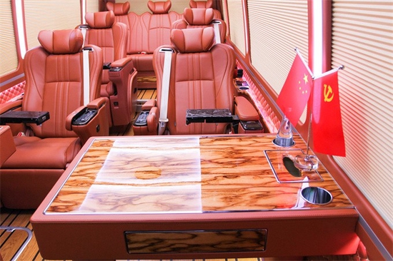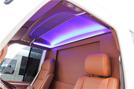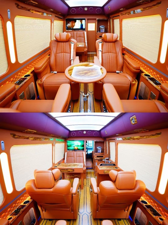 一汽丰田考斯特(柯斯达 (配置|询价))超VIP尊贵版是为打造舒适的移动办公环境而诞生的旗舰型豪华商务车,豪华版外观颜色为米黄金色,高贵的米黄金色金属漆搭配改装的彩色中线,提高了考斯特外观上的质感。丰田考斯特在商务车市场上比较低调,不但能做高端商务接待,也可以用于自驾出游,给到家人和一个舒适宽敞的空间,改装后的豪华内饰也能给人比较舒适奢华的体验感。丰田考斯特豪华版采用了全景一体式封闭车窗,配备的吸顶式空气净化器具有抗菌、除尘、除醛、除苯、消烟、补充空气负离子等多重功效,即使在密闭的车里也能呼吸到新鲜的空气。丰田考斯特豪华版驾驶室设计整洁而紧凑,视野开阔,景色一览无遗。驾驶舱隔板,将考斯特分割出独立私密的车内空间。