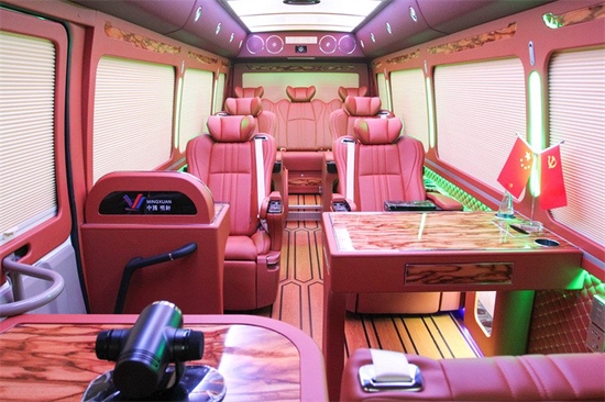 丰田考斯特后排空间设有首长席及超VIP尊贵版真皮办公桌、双人豪华旋转真皮座椅、单人豪华固定真皮座椅。先进的多媒体集成系统,由多媒体一体机、数字电视、GPS语音电子导航系统、倒车监视系统、组合音响系统等构成。考斯特全车系皆配备了车顶安全窗,车内座椅标配安全带,在前排座椅设定了ELR3点式安全带。针对滑动式自动门,设置了手动与自动转换手柄,在紧急情况发生时可以在车外开启车门,增强乘坐的安全性。顶棚的A380空客顶灯设计,不同的灯光颜色呈现出不同的空间氛围。丰田考斯特改装商务车同样也是如此。丰田考斯特在中国的商务车市场中存在的主要劣势有两点。第一是品影响。丰田考斯特虽然现在在中国生产但是,我们拥有的仅仅是他的生产权。