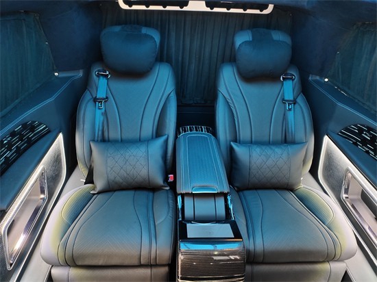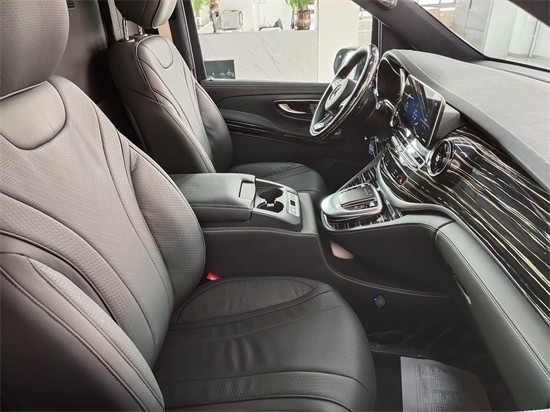 奔驰V260L4+2总裁版,升级的内饰令您感受到更奢华尊贵的礼遇。奔驰V260L4+2总裁版后排多功能航空首长席座椅为12向电动调节的奔驰S级座椅,小牛皮包覆,也是整车的核心区域,无论是单独调节三段式腿拖还是一键躺平,整个座椅达到独一无二的舒适度及调节精致水准,隔断骨架采用镁铝合金材质。整车配有进口麂皮绒窗帘,商务折叠小桌板让办公更加便捷。座椅中间配有保险箱让大佬们的收藏爱好无处不在,电动隐藏的酒柜,大佬们随时在车上品尝一下82年的拉菲,感觉棒棒哒吧!