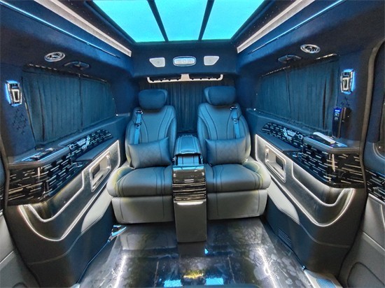 奔驰V260L4+2总裁版,驾驶舱与后舱是分隔设计的,形成两个独立的空间。42超大液晶升降电视及多功能吧台,整车环保材质包裹,实木地板铺设,搭配进口马毛地毯。奔驰V260L4+2总裁版吧台与座椅完美结合,下方是隐藏饰酒柜,合理运用了车内的空间,大佬们接待贵宾不失格调。顶部是最新巴赫版顶灯,点点星光象征着大佬们的事业巅峰。后排搭配琥珀纹木饰间和碳钎维组合,让整个内部空间运动时尚又有高级感。大家都知道只有在超跑或顶级豪华车上才会运用碳钎维,所以在价值上这款车也是极致的奢华。