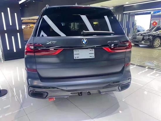 21款宝马X7 (配置|询价)双肾式大尺寸前进气格栅,大灯的外部造型上面是更加的扁平化,内部的天使眼的大灯设计在设计上面是更加的抽象化和科技感,下方的保险杠以及整体的氛围营造也是在向着沉稳的方向过度的。