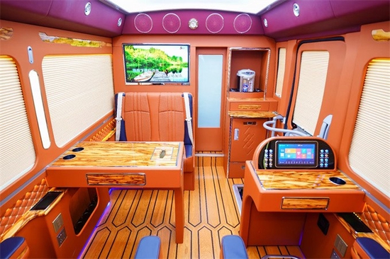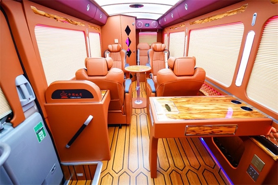 丰田考斯特(柯斯达)商务车它是集载人客车、商务车、房车的功能于一身的特种车型,为了让乘坐更加舒适,丰田柯斯达可拆去原车简陋的织物座椅的后新配了更加舒适的航空座椅。加宽加大的独立航空座椅让乘坐更加舒适,我们还可以根据需要增加和通风加热装置。缓解旅途疲劳的好办法是活动,一汽丰田柯斯达12座改装商务车中间配备了可拆卸活动圆桌,既可以又可以作为临时办公使用。丰田柯斯达改装商务车侧壁通常都会做真皮软包设计,起到美观效果的同时也有一定的隔音功效。丰田考斯特车内的窗帘的设计上丰田考斯特也充分考虑了内饰设计的独特性。豪华的布艺窗帘以及大气的电动百褶窗帘,丰田考斯特改装商务车在内饰设计上充分展示出了自己大气的风格设计。