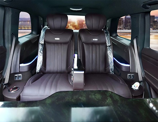 今天介绍的内饰方面绝对是叹为观止,原车从原本的七座升级成四座方案,把城市用SUV车型奔驰gls的舒适度打造成为不输与埃尔法和V260,动力和操控、灵活度等更是狂甩商用车几条街。