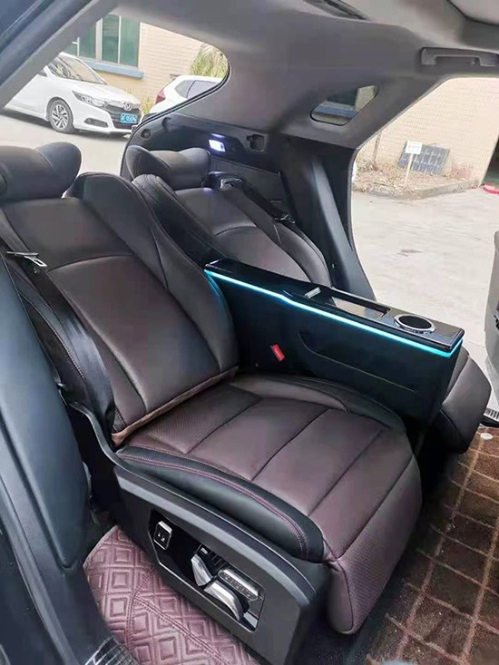 升级四座以后腿部空间会比原车大一些,并且座椅有六项调节功能全是电动调节。