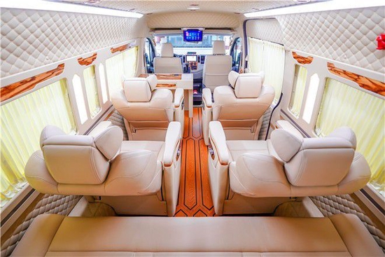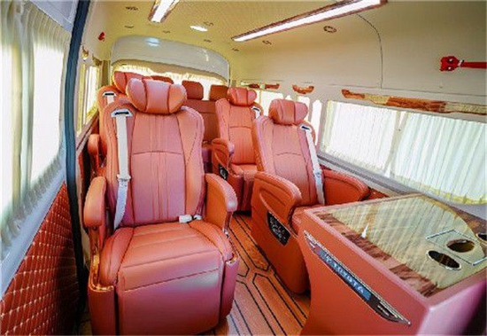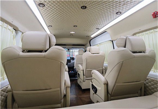 千万不要小看丰田海狮的6速变速箱!每档的切换非常平顺而且动力迅猛,高速超车觉对没压力。新丰田海狮 轴距: 3860 mm 轮距(前/后): 1675/1670mm,长: 5915 mm,宽: 1950 mm,高: 2280 mm。丰田海狮HIACE车厢设计宽敞,中间走道将乘客座椅隔开,更方便乘坐及进出。所有座椅均为高级真皮并配备头枕,每个头枕及椅背均可调节至适宜高。
