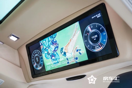 二排为宾客配备了杯托、折叠桌板、21寸吸顶娱乐电视