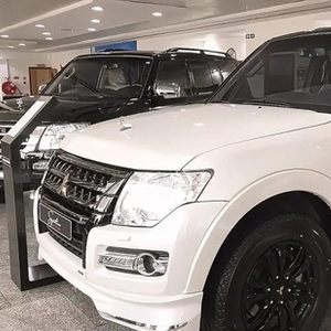外型一部分与以前2020款帕杰罗基本一致。前汽车标志选用金色配色,并配前标。尾端装有外置式备用胎。后标和英文字母也是金色的。