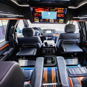 福特F150勇猛者SUV以美国进口的福特F150为原型车,精工打造,通过后尾箱与车体的连接,形成与车身稳固的一体式车厢,同时在原有五座的基础上,加装第三排真皮座椅,完美融汇成20款福特F150勇猛者。20款福特F150勇猛者SUV在保留其原型车强悍性能的同时合理利用尾箱空间,将其打造成为一个大型豪华舒适的7座型SUV。三排座椅采用电动沙发床设计,可通过中控隐藏式扶手大屏来一键操控,座椅四六分可独立控制,来调节最舒适的位置,三排座椅中控屏两边增加了多色自动调节的氛围灯,可谓细节拉满;同时还可以对其180度放平成床为我们提供舒适的休息空间。