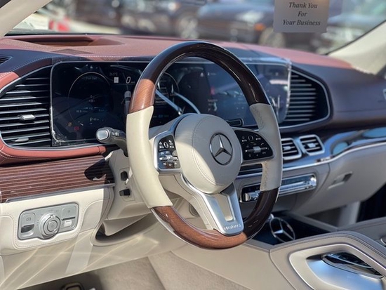 奔驰迈巴赫GLS600标志性的连体双屏匹配了最新的MBUX人机交互系统,配合上触摸板和方向盘上的拇指控制系统,让整车功能使用起来更加便利。与此同时,新车还搭载了带自适应侧面碰撞保护、交通拥堵辅助与主动变道辅助的奔驰最新一代智能驾驶辅助系统,有效保障行车安全。