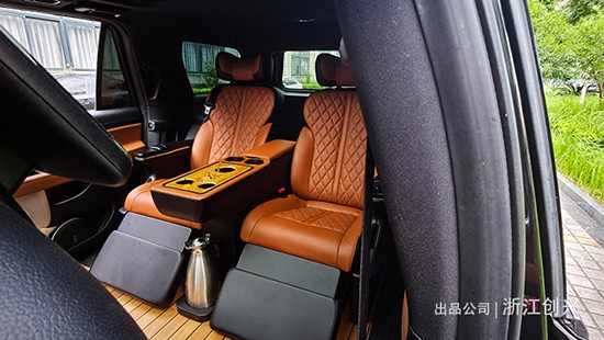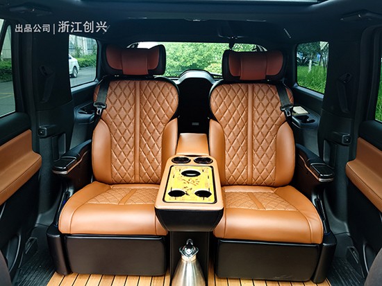 通过后期升级成四座后,风格上对比原车有了很大的改变,两张座椅变成了沙发椅,如果说原车六座是为了承载人员的话,那四座的它完全就是想着如何让后排的人坐的更享受。