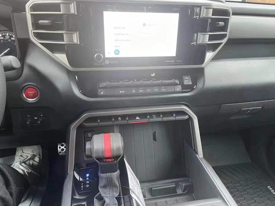 丰田坦途皮卡内饰较为简洁大方,在色彩设计上基调较深,处处彰显的科技感和运动感还是暴露了这款车的特点,车间内的储物能力也十分强大,对于这种加版皮卡来说储物空间吝啬说不过去了,如果细数的话,车内光水杯架就有不下与10个,分别在前排扶手箱处、后排扶手处以及车内门板等各处一应俱全。
