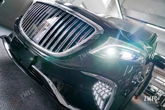 奔驰VST780豪华七座商务车激进运动的前脸风格是这款巴赫最大的辨识度,瀑布式直列中网做了更纵向延伸的处理,搭配恰到好处的镀铬元素,视觉效果更显气派。