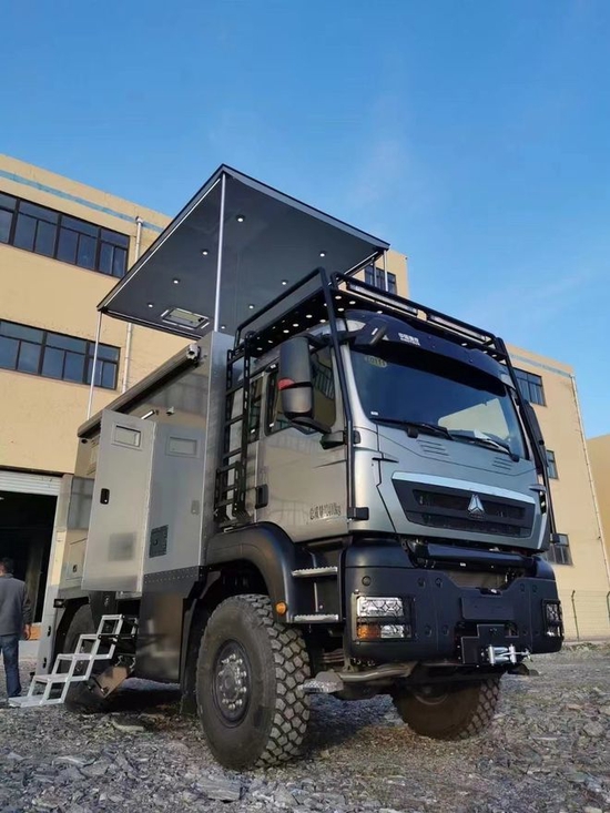 箱体采用六明治箱体复合材料,其开发的初衷为高安全性和高保温性,大量高科技材料的应用使6CM厚的箱体达到了红砖24墙的保温效果。高强度铝合金骨架经过热断桥处理,附重部分采用铝包木结构,使箱体工艺具有安全系数高,隔音隔热一流的特点,且在整车发生翻滚时起到保护坐乘人员的作用。汕斯特越野房车车窗采用诺马迪森专属车窗,配英国品牌遮阳帘和防蚊网。尾部18500T-MAX 24伏电动绞盘,备胎电动挂在系统,加挂两个外部储物盒。