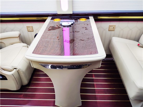丰田考斯特13座内饰的多媒体设计是让我们在舒适的乘车旅行有更多的轻松时刻的设计,超清的显示屏,吸顶电视,车内的无线网设计以及KTV麦克的充分准备都可以让我们在乘车的过程中享受到游戏的愉快。丰田考斯特13座改装商务车内饰的设计可以让我们的旅途不再是无聊或是疲惫,舒适的座椅贴心的设备让我们随时随地都可以有着属于自己的快乐。