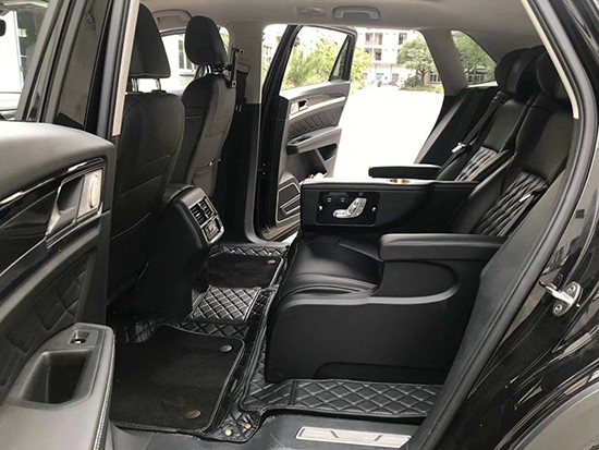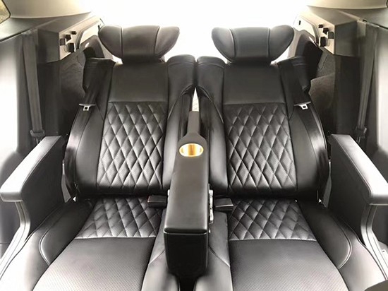 改装航空座椅后空间要比之前大很多,靠背可以躺倒下来还带有电动腿托,大的空间可以保证乘坐的不拥挤,这是舒适性上最重要的,航空座椅的海绵用的太空棉厚实柔软,皮料用的纳帕皮也是高档皮料有记忆回弹,乘坐上去的感觉就像是坐在一张大沙发上