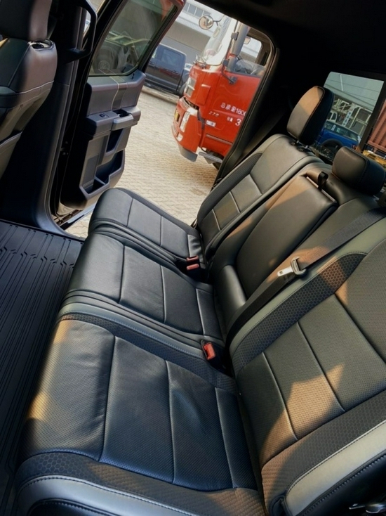 2021款全新福特猛禽F150Raptor皮卡中控台部分辅以银色饰板装饰六指针仪表盘的设计有些后工业时代的复古风格。采用带电冷热功能的可记忆式皮革座椅,头枕四向可调,搭配铝饰条和黑色钢琴烤漆内饰。可电动升降的后窗带隔板和电热除霜功能。进口20款福特猛禽F150皮卡真皮座椅包裹性很强,无论是越野还是长途旅行,都很舒服,丝毫不感觉到这大家伙的压抑,二排空间也是十分宽敞,乘坐四个身材高大的乘客绝对没问题。