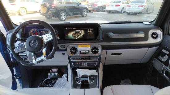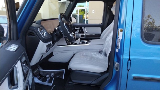 2021款奔驰G63 (配置|询价) 南海蓝/白色菱形格座椅,AMG碳纤维内饰,AMG红色卡钳,加热方向盘,AMG碳纤维性能方向盘,22寸熏黑十字幅面锻造轮毂,皮质把手,Nappa双色仪表盘,车轮锁,AMG 暗夜包(暗黑色的后视镜,备胎罩,轮眉,前进气格栅,前后保险杠,雨刷,枪灰色的AMG专用散热器格栅,黑色前指示灯,大灯和尾灯),G制造内饰增强包(AMG独家Nappa菱形格座椅,nappa真皮仪表台,多功能前座椅带加热通风按摩,AMG头枕和脚垫,乘客徽章握柄)