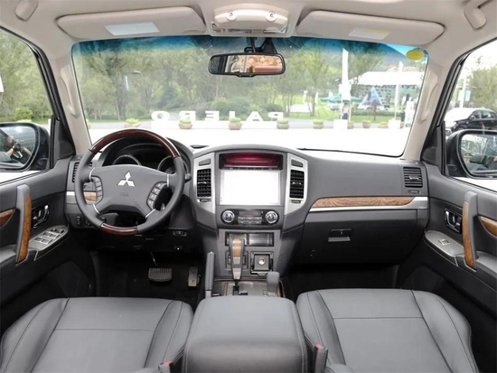2022款帕杰罗车里选用两色配搭,装有木纹饰板装饰面板。新汽车中控依然设计方案有帕杰罗特点的双屏幕。上端单色显示屏可表明车外溫度、海拔高度和里程数,方位、平均油耗等信息内容,下边为信息娱乐系统显示和单盘CD。