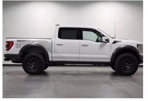 全新福特猛禽F150Raptor皮卡节后提车国六 环保公开 1。原厂调校450匹马力及510磅扭水晶LED大灯,带黄色日间行车灯 3。原厂中网小黄灯(7个) 4。带雷达测距LED尾灯和反光镜共同作用(可起到并道辅助提示作用) 5。高强度LED安全接近灯(带盲点接近系统)随心制开启反光镜照明模式 7.17英寸锻造铝珠锁功能轮毂8。猛禽专业设计全身彩贴。福特猛禽F150内饰采用独特的中控台和门饰板面漆和真皮包裹的方向盘。