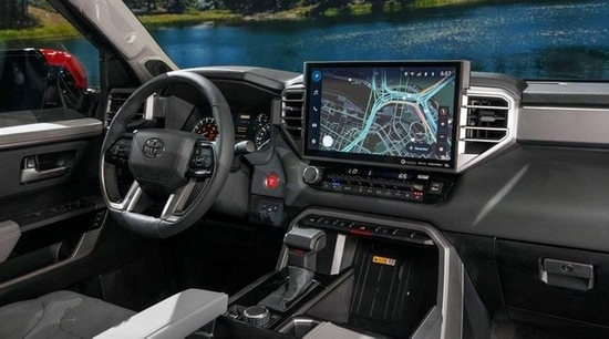 2021款丰田坦途皮卡在内部设计上,座椅全部采用真皮制作,方向盘和档把为桃木制作,