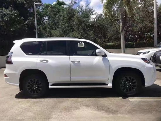21款雷克萨斯GX460 (配置|询价)车身侧面装配了多辐式铝合金轮毂,部分车型还提供了熏黑处理,并均提供了金属迎宾踏板以及顶部行李架。车尾为单边单出式排气布局,尾门上方还加装了大尺寸扰流板。