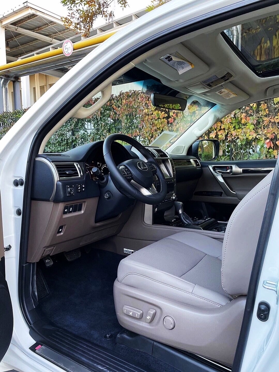21款美规雷克萨斯GX460.V8 4.6L标配、七座、非承载式车身、6挡手自一体、18寸轮、12气囊、悬挂系统(KDSS)、中央差速锁、天窗、光LED大灯、LED日行灯、打孔普通皮革座椅、电动座椅主驾带记忆、智能钥匙、8寸屏导航、蓝牙、倒影、电动真皮多功能方向盘、定速巡航、胎压监测、电动调节外后视镜(记忆功能、可加热、LED转向灯、倒车自动角度调节)。并道。隐私玻璃。行李架。黑色轮毂,无底盘升降 自适应巡航 选配:豪华包(LED雾灯,雨量感应雨刷,前后电眼,导航包,灰色木内饰,加热通风前座椅,加热第二排座椅,三区空调)拖钩 不锈钢排气管 木皮方向盘