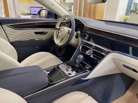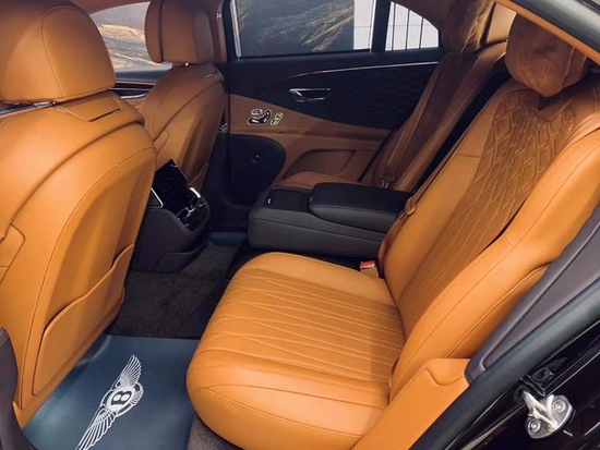后排采用了行政座椅设计,并采用菱形纹路进行装饰,后排乘客可通过专属的触摸式远程遥控装置调节一系列车内设置,包括后排座椅按摩、后排空调、车内氛围灯等,以此营造富有创新性的奢华座舱氛围。音箱系统方面,全新宾利飞驰将标配功率达到650W的10扬声器音响,并提供1500W B&O十六扬声器或者2200W NAIM十八扬声器音响系统供选装。