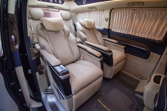内饰风格依旧保持奔驰商务车的豪华质地,座椅均由进口澳洲小牛皮包覆,就连驾驶座也绝不含糊。 GPS全球卫星导航系统带倒车影像,驾驶室独立压缩式冰箱,奔驰V260L商务车内每一项配套堪称经典。 奔驰豪华商务车标配的电动中滑门设计,每一项设计都旨在为您体现卓尔不凡的独特魅力。奔驰vclass,v260l尊贵加长版改装车价格。