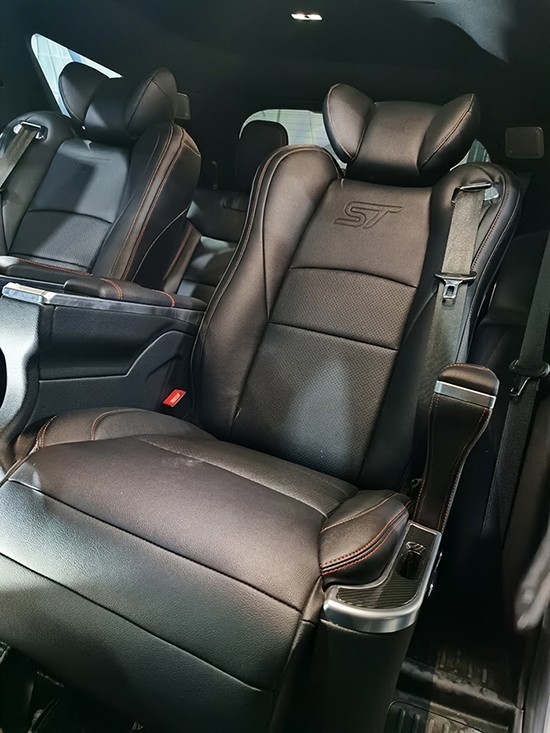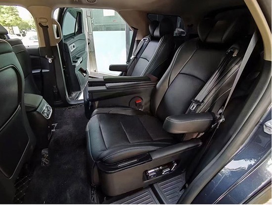 重点要说的就是二排座椅了,要做到真正的舒适豪华的话我们可以把二排座椅升级成航空座椅,做成一个舒适的独立乘坐区域,升级好后可以把靠背往后调节下来,让坐在第二排的乘客可以得到很好的休息服务,配合本身车自带的全景天窗让二排可以得到一个非常宽阔的视野,座椅除了靠背可以调节外还带有通风、加热、按摩、电动腿托等功能,和商务车的航空座椅一样,非常豪华。