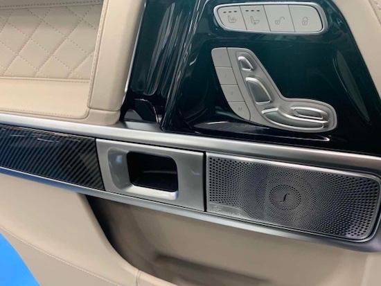 22款G63 (配置|询价) 黑 标准配置:4.0升V8AMG发动机,577匹马力,AMG变速TCT 9速变速箱,前座椅记忆,前排座椅加热,滑动玻璃天窗,三区气候控制,空气净化,电热挡风玻璃,加热方向盘,AMGNappa真皮性能方向盘,Burmester环绕声系统,苹CarPlay,64色LED环境照明,自动启动/停止,AMG性能排气系统,AMG高性能制动系统,红色的刹车卡钳,AMG控制自适应阻尼架,主动车道保持辅助,盲点辅助,主动刹车辅助,交通标志辅助,主动停车辅助,360度环影,主动多光束LED照明系统,LED日间运行灯选配:限量白色菱格内饰AMG暗夜包(黑色外观套件,黑色防撞杠,熏黑大灯,尾灯,示宽灯单选:碳纤维内饰座椅舒适包 (座椅舒适包(带按摩功能的多功能前排座椅、豪华前头枕、高级舒适套装)22熏黑轮