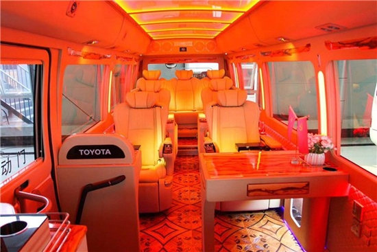 丰田考斯特改装商用车在外观设计上追求大方的尊严,所以前面的车的设计更注重细节装饰,镀铬设置是细节中的画龙点睛。如需选择座椅,您可以根据需要选择豪华真皮座椅或舒适的进口All-Arm座椅以及台式冰箱。 将老年人需要携带的药品或食品放入冰箱,为出行提供了更多的便利。