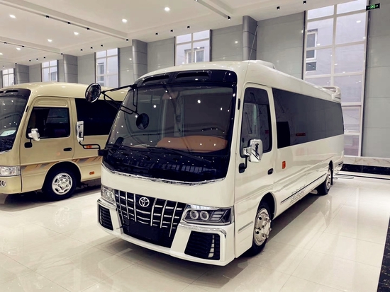 丰田考斯特华通丰业为我们提供了一个极为舒适的乘车体验。豪华版外观增加了玻璃以及镀铬装饰和镀金标识,庄重感与豪华感油然而生。车内还配备了吸顶式电视,华通丰业让您可以在车内打发闲暇的时间。舒适的航空座椅,使考斯特像家庭轿车一样舒适。除了可以选择座椅的数量,同样也可以选择座椅的材质华通丰业。豪华真皮座椅,可旋转的首长席座椅,以及原装进口的埃尔法座椅。