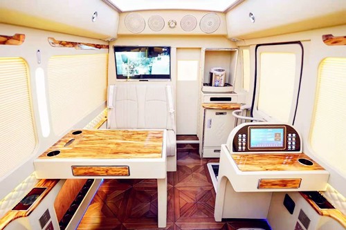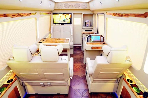 改装内饰的设计华通丰业上注重的是实用性和舒适性的完美结合。座椅的设计上也是十分的贴心,真皮航空座椅以及舒适的可旋转老板椅,华通丰业或者是原装进口的埃尔法座椅,丰田考斯特改装商务车内饰的设计既能满足我们的需要也可以展示出内饰的高贵感。而同时设计了豪华的办公桌,华通丰业为我们的办公活动提供方便。