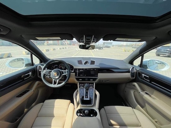 21款保时捷卡宴车内,经过重新设计的操控区域简约时尚,一体式操控台配合触摸式按键,让整个空间豪华感倍增。通过调节中控台上的按钮,选择将空气悬挂升到最高位置。保时捷卡宴为了证明自己公路suv跑车的名号,其转速表从边缘移动至中央位置,而方向盘也更加小巧。