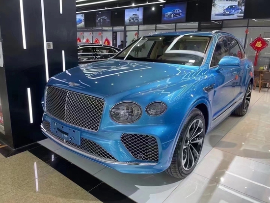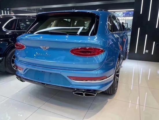 宾利添越 (配置|询价)前保险杠轮廓进行了全新的设计,两侧的导流孔面积更大,为车头增加了一些运动元素。车身侧面的线条十分修长,硬朗的腰线十分的具有力量感。中网面积相较于老款更大,角度更为直立,看起来更加大气。