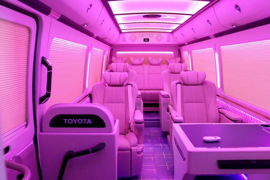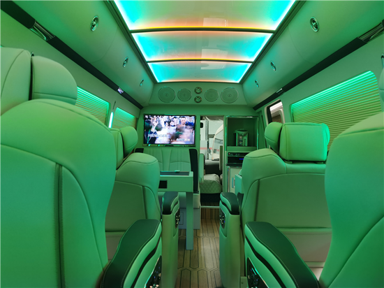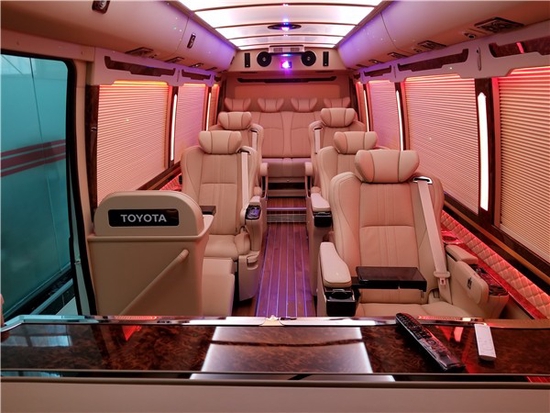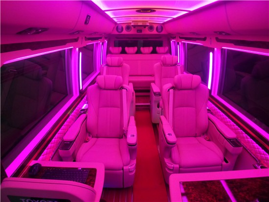 丰田柯斯达的座椅双腿收放自如,敞开心扉享受旅途的愉快,忘却旅途的紧迫感,体验如家般的感觉。豪华高档办公桌以桃木真皮为材料,打造最舒适的高端使用的办公桌。双人汇报席和360°可选装首长席,方便您在旅途中您进行的紧急会议。贴心的电源以及显示屏设置,使用的办公设置,柯斯达高级改装与细节之处展现尊贵风格,[购车咨询在新闻最下方]
