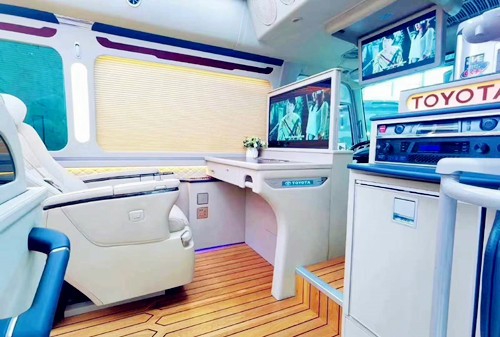 丰田考斯特 (配置|询价)改装华通丰业是作为房车出现在我们的市场之中,因为这款车的车身长度达7米,内饰设计宽敞,是作为家庭旅行用车的一个最佳的选择,华通丰业而改装成房车也就成为我们在生活中的最佳的交通旅行伴侣。