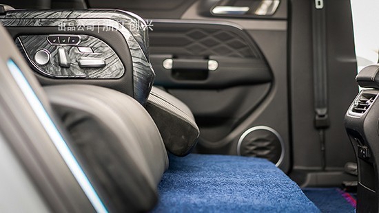 说到后排的话,我们把这台坦克300城市版车型的后排加装的航空座椅,原车座椅的腿部空间大约有一拳四指左右,我们换了航空座椅后还把座椅往后装了50多公分,腿部空间要比之前大上许多,甚至坐在后排上腿可以伸直。