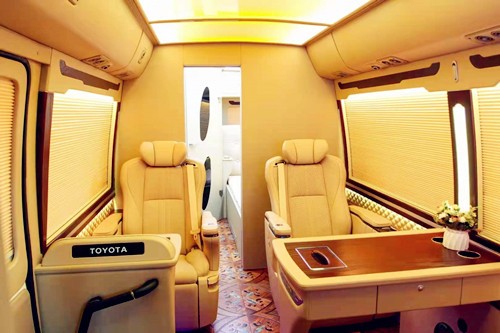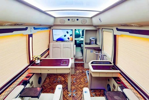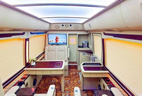 最后华通丰业,从内置座椅上说,座椅的材质不同档次不同风格不同,可以根据自己的需要进行设置。真皮座椅,豪华航空座椅都可以根据自己的选择进行改装。华通丰业同时还可以安装沙发床,方便我们在旅途中的休息。不会惧怕和任何商务车的对比。在内饰改装上更是别出心裁,车内窗帘的的选择上就有多种方案,豪华的布艺窗帘以及自动的百褶窗帘都在我们的选择范围内。华通丰业随心的定制是其他任何商务车都无法企及的。