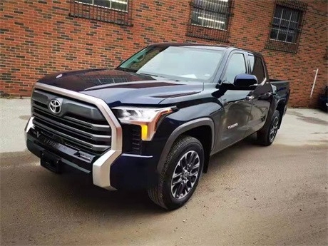 22款丰田坦途车身侧面,新坦途还是标准的皮卡线条设计,在前后轮眉上方采用了独立的线条设计来突显肌肉感,熏黑的A柱、B柱处理也让它的乘用舱看起来更长。同时在轮眉以及轮辋处也都采用了熏黑处理,视觉效果上更突出运动感。