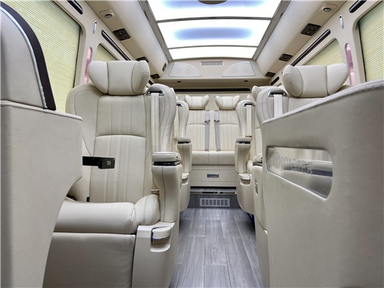 进入车身之内,首先从座位上来说,在座椅的设置上,12座改装商务车座椅的设置上采取了3221的乘车人员的座位布局,后排连着的三个座椅可以调整,使其成为一张在旅途劳累时需要的一张舒服的床。前排独立的真皮座椅,宽敞又舒适,最值得陈赞的还不止这些,坐上安装上电动的调节装置,可以根据自己的需要调整座椅的靠背角度以及前后的距离,更值得一说的是丰田考斯特改装安装航空座椅首长席,可360度旋转,如此舒适高端,正是我们高贵身份的最佳衬托。