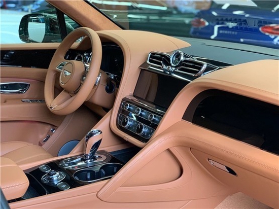21款宾利添越配备了全新样式的三辐式多功能方向盘,整体质感良好,中控台中央悬浮式液晶屏设计,上方圆形出风口是宾利独有的“牛眼式”出风口设计。新款宾利添越内饰几乎全部被顶级的牛皮包裹,而且全部是由技术优异的工匠纯手工打造,辅以少量的木纹和金属装饰。