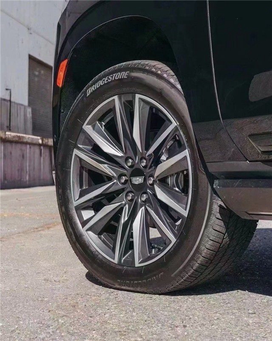 2021款新车的车身尺寸都已经远超现款车型。2021款凯迪拉克凯雷德的车身长度是5382mm,宽度是2059mm,高度是1948mm,轴距为3071mm,ESV版本则是长度5766mm,宽度2059mm,高度1942mm,轴距3407mm。22英寸轮圈是全新凯雷德2021款的标配,轮胎尺寸为275/50 R22。运动型车型的双六辐轮圈造型更具活力,小图中豪华型车型轮圈则显得更加典雅。