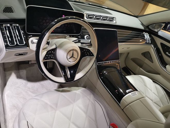 新款迈巴赫S580 4MATIC的内饰设计,对于许多消费者来说应该是不太陌生了,采用了最新的数字豪华座舱。中控台是T型布局,配备了一块12.8英寸中控屏,以及12.3英寸的悬浮式仪表盘。用料部分可以说是极尽奢华,方向盘是木质外圈、真皮内圈,配备主动式多仿型座椅,采用手工缝线工艺,具有加热、通风、按摩等功能。在匹配上全景天幕、柏林之声4D音响系统、64色氛围灯、香氛装置,有着高端豪华的驾乘体验。