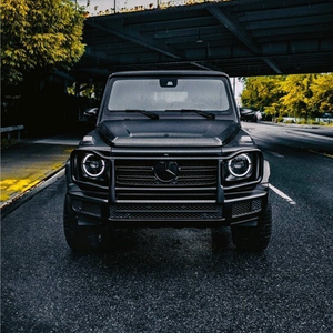 21款奔驰G550是一部纯粹的全地形越野车,粗犷的外观,标志性的三肋镀铬格栅,大大的奔驰车标非常醒目,硬朗比值的车身线条完全是硬派越野的风格,车头圆形前大灯设计很复古,平直的线条贯穿全身,后尾部线条也是有楞有角,后置式的备胎彰显出十足的越野味道。