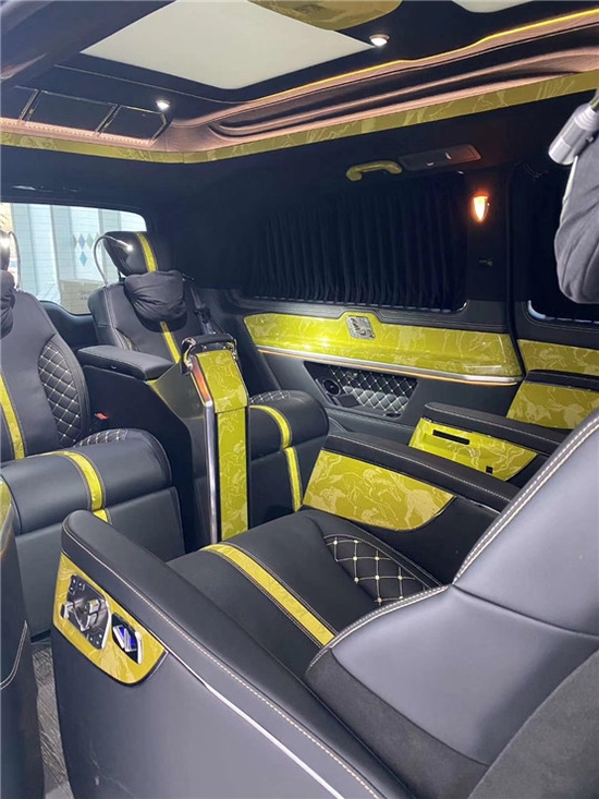 奔驰V260L尊贵加长版改装商务MPV六座金缇香版,加装高顶改装,整车长宽高5370*1928*1920,C照国六排放标准全国4S店联保,7*24小时上门售后维修。奔驰威霆 (配置|询价)、V260L改装高顶平顶、隔断半隔断无隔断,4座6座7座,隐藏6座隐藏7座等多种内饰风格供您选择,宜家宜商的商务保姆车非奔驰V260L莫属。