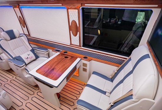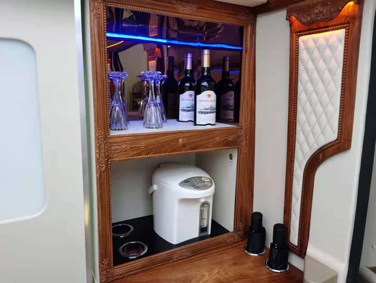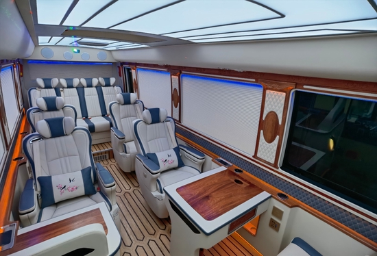 宇通T712座红木定制款除了正副驾驶座椅,车厢共包括4张埃尔法进口航空座椅、一张反向固定航空汇报席,每个座椅具备前后移动、靠背上下通风加热、电动腿托、一键复原、等俨然陆地头等舱。宇通T712座红木定制款最后排四联座也不能憋屈!毕竟是接待神车。四联座椅,可以电动放平成一个宽敞的沙发床,当旅途劳累时,可以躺下来好好的休息,放上首轻音乐来放松身心。