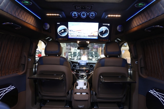 奔驰V260L改装VS680高顶无隔断七座,内部装饰充满法国式的浪漫,九宫格灯珠镶嵌的椭圆形豪华顶棚造型设计气势磅礴,沿车身走向,两端与驾驶室隔屏和后门相衔接,形成古典对称的流线型图案。奔驰V250改装商务车全车新款电动精美布艺窗帘、控制车内电器的触摸屏操作,无不体现至尊豪华的商务形象,7座,家居、商用适合不过、Nespresso咖啡机,对车主的冷暖饮食需求关怀备至。