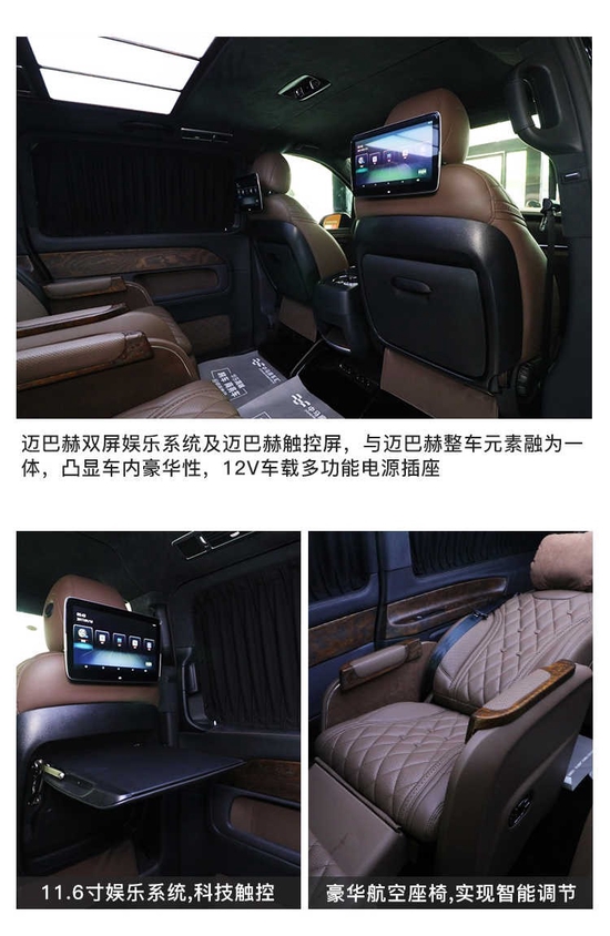 奔驰V260L改装V680高顶版北京最便宜。进入到进口奔驰V260改装迈巴赫VS680的驾驶舱,采用奔驰现款轿车的设计风格,豪华之感十分浓郁。整个车舱全部采用软性皮质包裹,中控的胡桃木覆盖以及周边镀铬的律动的装饰条,轻而易举的将奢华感受烘托出来。奔驰VS680动力系统依旧为2.0T汽油发动机与7速手自一体变速箱搭配,具有高效的操控性能,低能量消耗以及超乎寻常的舒适感,为驾驶者与乘用者提供难忘的驾乘体验。