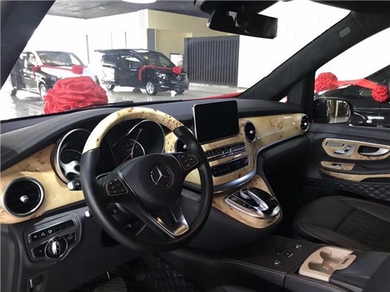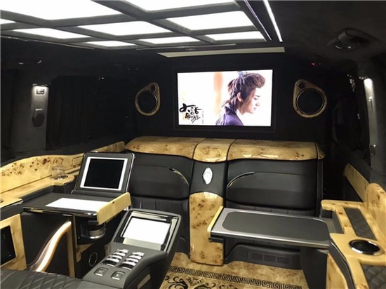 奔驰V260L钻系列全车采用隔断设计,实木吧台可电动收展成隐藏式秘书座椅,吧台于座椅完美结合,座椅采取迈巴赫S (配置|询价)500反向座椅。影音娱乐系统,32寸超薄可升降液晶电视、日本健伍音响、蓝光DVD,以及电动办公娱乐桌板系统、12V可翻转热水壶、指纹识别保险柜、酒柜,对于商务谈判来说,这一切的配置都来得恰到好处。
